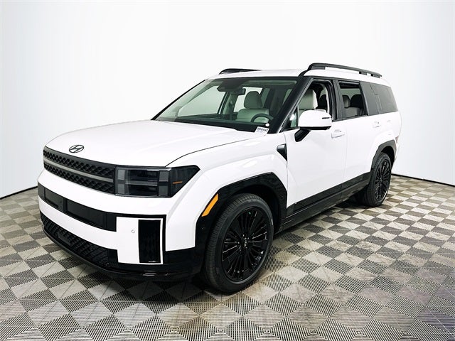 Serenity White 2026 Hyundai Santa Fe Hybrid Calligraphy Price includes: $4000 - Hyundai HMF Dealer Choice : $4000 discount and 5.39% APR for 24 months. $44.05 per $1000 financed. Available to well qualified buyers who finance through Hyundai Motor Finance. H704.