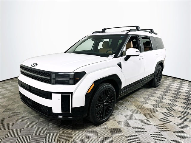 Serenity White 2026 Hyundai Santa Fe Hybrid Calligraphy Price includes: $4000 - Hyundai HMF Dealer Choice : $4000 discount and 5.39% APR for 24 months. $44.05 per $1000 financed. Available to well qualified buyers who finance through Hyundai Motor Finance. H704.
