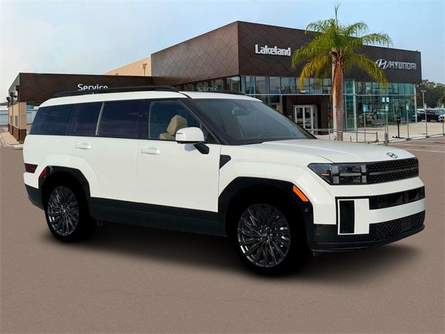 Serenity White 2026 Hyundai Santa Fe Calligraphy Price includes: $3500 - Hyundai HMF Dealer Choice : $3500 discount and 5.39% APR for 24 months. $44.05 per $1000 financed. Available to well qualified buyers who finance through Hyundai Motor Finance. H704.