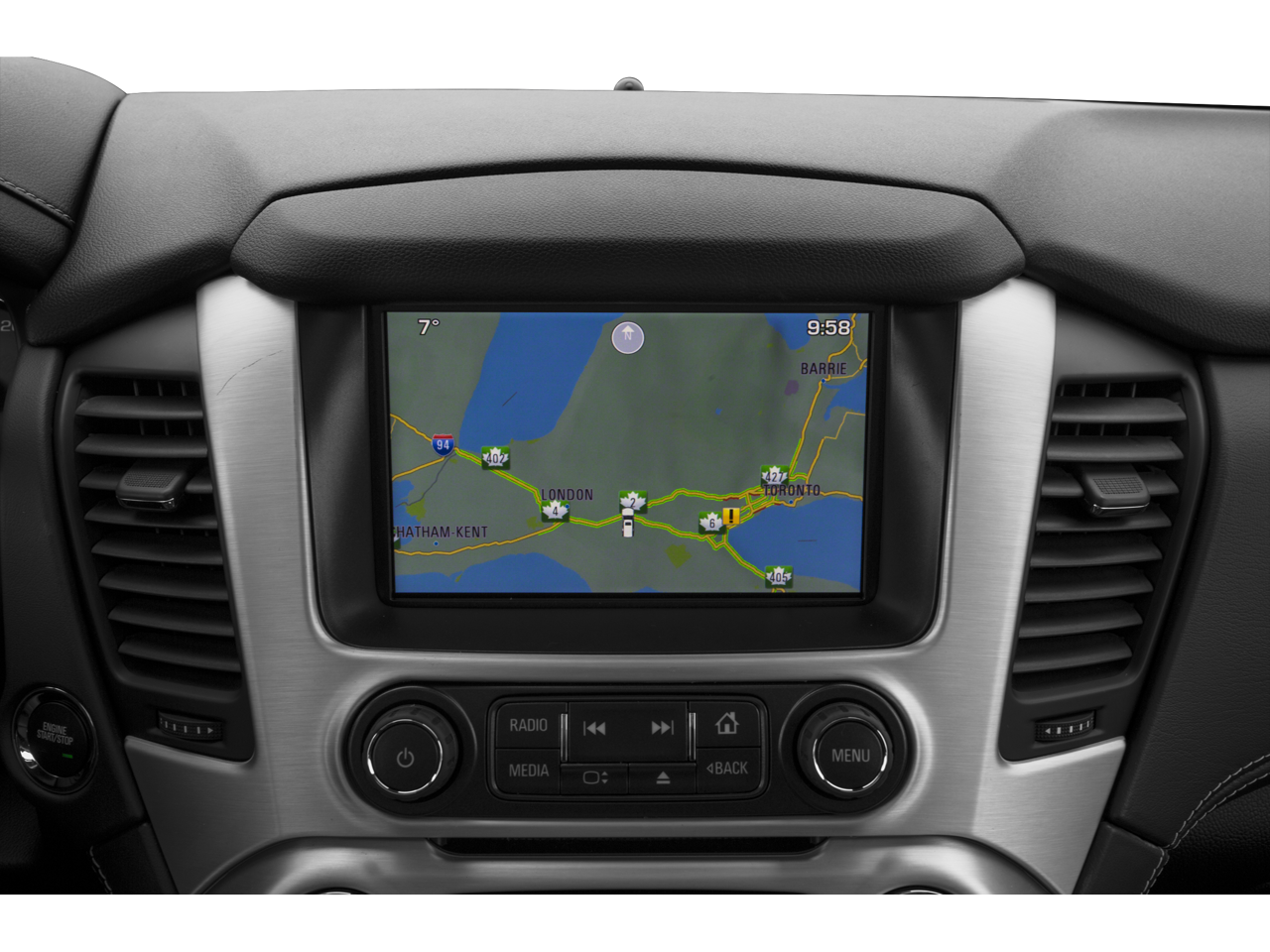 - Audio system, 8" Diagonal Color Touch Screen with IntelliLink includes New text message alerts and Siri Eyes Free functionality through voice command, AM/FM/SiriusXM/HD with USB ports, auxiliary jack, SD card slot, Bluetooth® streaming audio for music and most phones, hands-free smartphone integration, Pandora Internet radio and voice-activated technology for radio and phone, and an articulating screen with hidden storage. Includes 5 USB ports, 1 auxiliary jack and 1 SD card reader (See "gmtotalconnect.com" for phone compatibility information.)