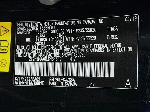 - Rear Tire Size: P235/55VR20