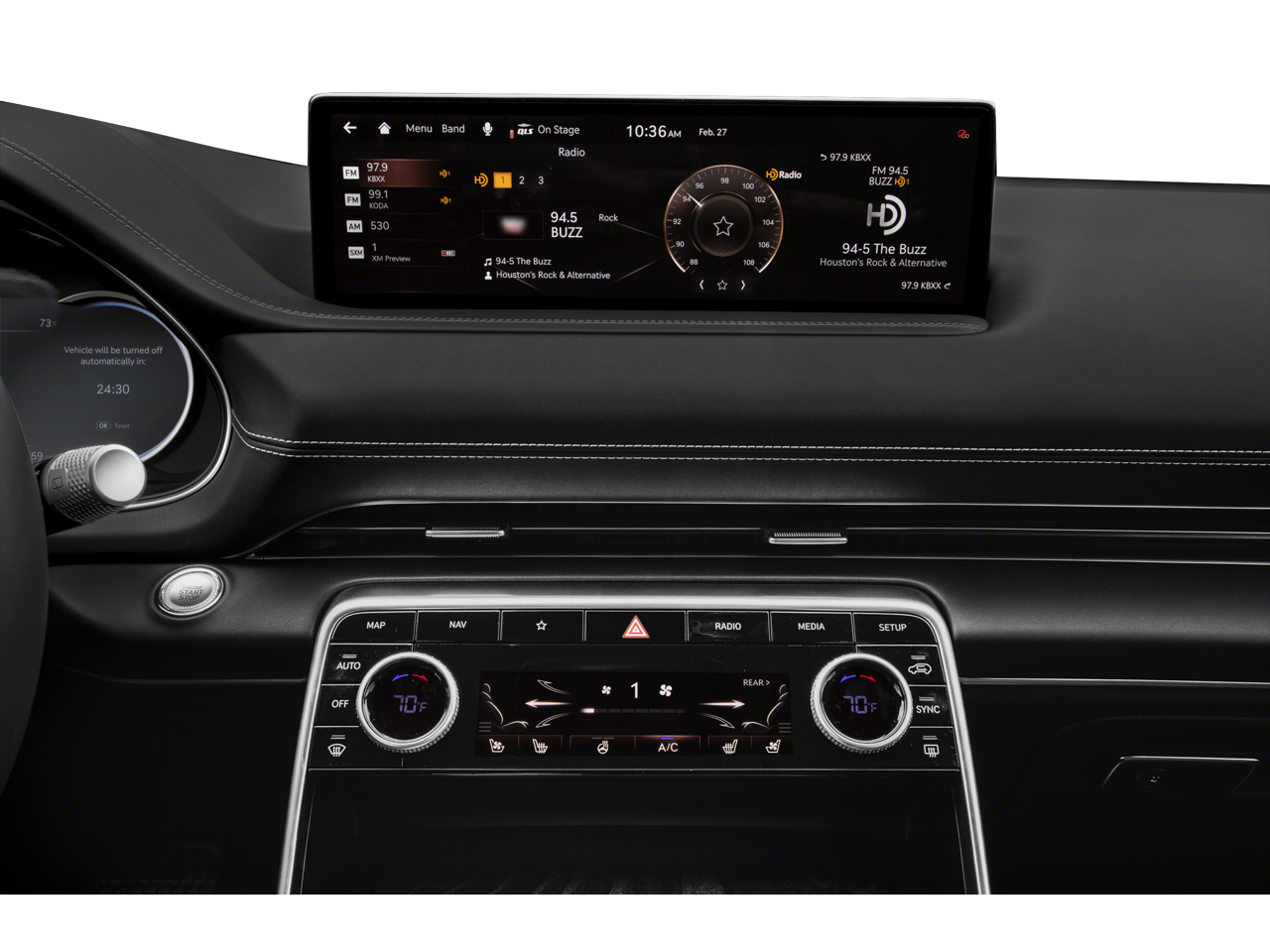 - Radio: AM/FM/SiriusXM/HD Lexicon Prem Audio System -inc: 21 speakers, 14-channel digital external amplifier, Quantum Logic surround sound,integrated navigation, 14.5" HD LCD screen, Apple Carplay and Android Auto, Bluetooth hands-free phone system w/audio streaming, steering wheel controls, 2 front and 2 rear USB ports, 2 12v power outlets, front wireless device charger and Genesis Connected Services