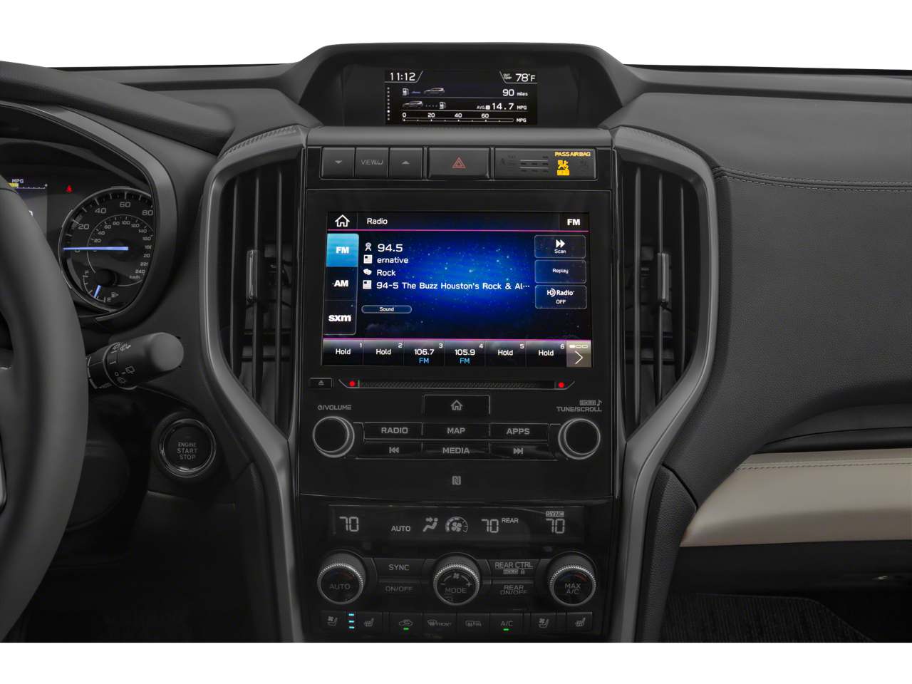 - Radio: Subaru STARLINK 8.0" Multimedia Nav System -inc: AM/FM stereo HD Radio w/single disc CD player, MP3/WMA/CRR/RW file capability, multi-touch gesture high resolution display screen, voice activated controls for radio and navigation, Bluetooth audio streaming and hands-free phone connectivity (refer to subaru.com for cell phone compatibility), Bluetooth hands-free SMS text messaging connectivity (refer to subaru.com for cell phone compatibility), Near Field Communication (NFC), iPod control capability, SiriusXM All Access radio (4 months free trial/subscription required after), SiriusXM Travel Link (3 years free trial/subscription required after), SiriusXM Traffic (3 years free trial/subscription required after), smartphone integration for Aha, Android Auto, Apple CarPlay, Pandora and STARLINK cloud applications, USB audio system update, TomTom navigation system update w/USB/Map Over The Air (MOTA) (3 years free map updates), steering wheel controls for audio and Bluetooth, harman/kardon quantum logic surround sound speaker system w/14 speakers, subwoofer and harman/kardon 792 watt equivalent maximum output amplifier, 3.5mm auxiliary input jack and front, second and third row dual USB ports