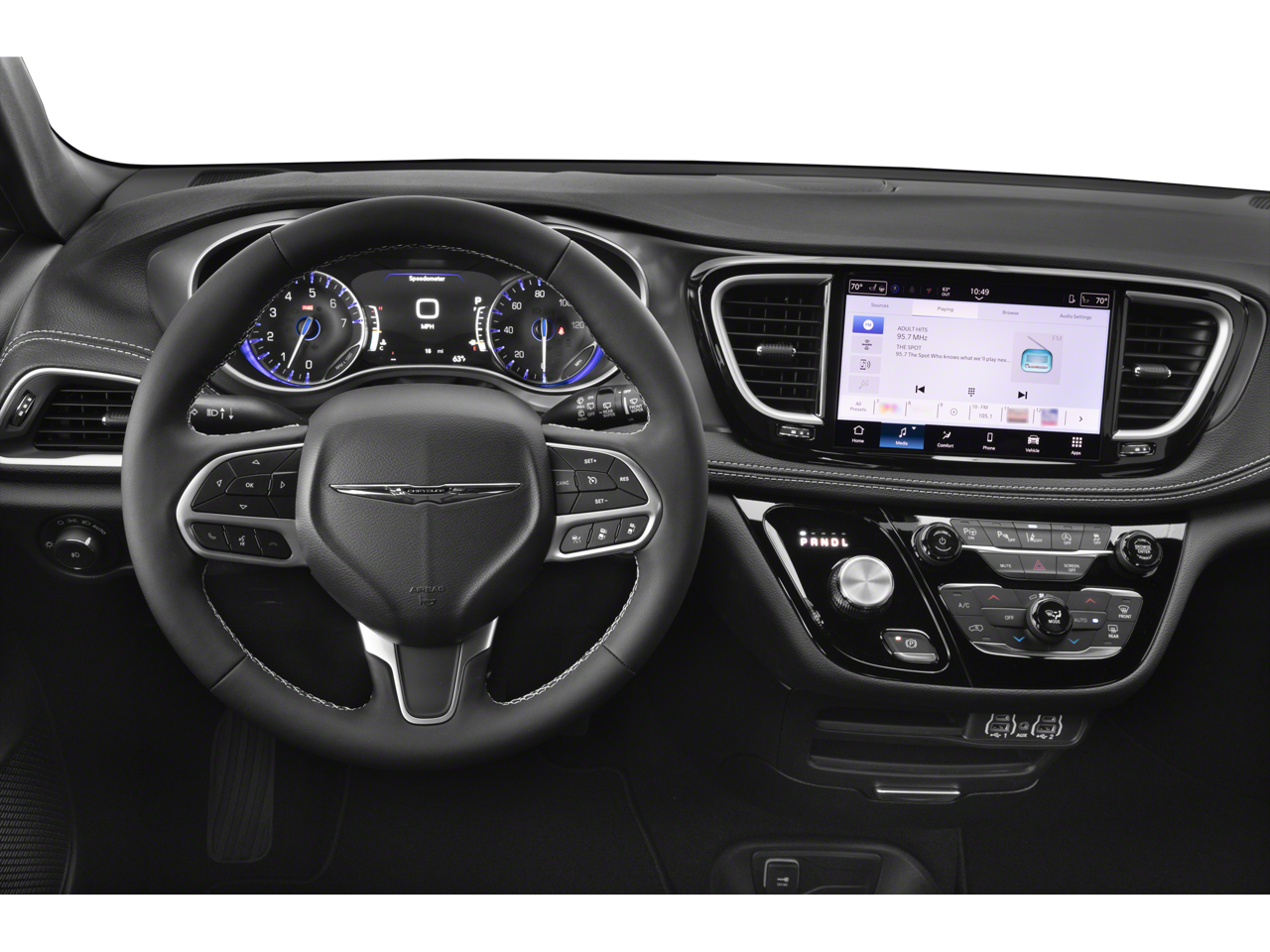 Step inside and discover the Pacifica's thoughtfully designed cabin, featuring premium Caprice Leatherette Bucket Seats, a heated steering wheel, and a 10.1 Touchscreen Display with Apple CarPlay and Android Auto integration. The Uconnect 5 infotainment system keeps you connected and entertained, while the ParkView Rear Back-Up Camera and a suite of advanced safety features, including Blind Spot Monitoring and Rear Cross-Path Detection, provide added peace of mind.